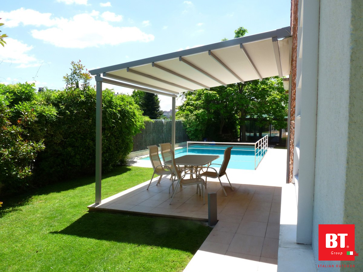Η BT Group κατασκευάζει ολοκληρωμένα συστήματα σκίασης με κορυφαία ποιότητα και Ιταλικό design. Οι λύσεις καλύπτουν κάθε ανάγκη, από βιοκλιματικές πέργκολες και σταθερά στέγαστρα μέχρι προηγμένες τέντες με αυτοματισμούς και κάθετες ZIP.