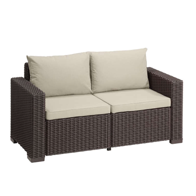 Καναπές CALIFORNIA του οίκου Allibert K/D 2θέσιος σε χρώμα καφέ με μαξιλάρι από resin. Συνδυάστε τον με πολυθρόνα και τραπεζάκι του ίδιου οίκου για ένα ολοκληρωμένο σετ.