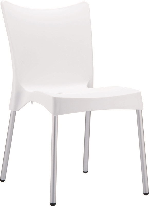 Καρέκλα JULIETTE του οίκου Siesta σε λευκό χρώμα,κατασκευασμένη από πολυπροπυλένιο ενισχυμένο με 20% fiber glass και πόδια από ανοδειωμένο αλουμίνιο Φ25mm,για απόλυτη αντοχή στον χρόνο.Κατάλληλη για εσωτερική και εξωτερική χρήση,στοιβαζόμενη σε πολλά χρώματα,ιδανική για επαγγελματική χρήση.