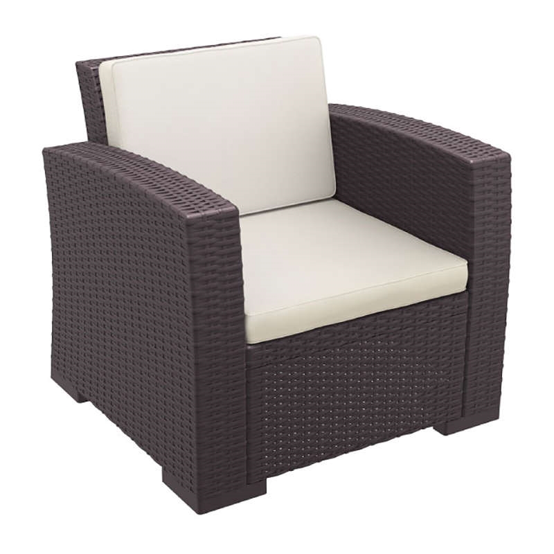 Πολυθρόνα MONACO του οίκου Siesta σε χρώμα brown με μαξιλάρι, K/D, από υψηλής ποιότητας πολυπροπυλένιο με ενίσχυση από υαλώδεις ίνες (fiber glass) για απόλυτη αντοχή. Χωρίς μεταλλικό σκελετό για μεγαλύτερη αξιοπιστία στον χρόνο. Διαθέτει UV protection για μέγιστη προστασία από τον ήλιο ώστε να μην αλλοιωθούν τα χρώματα. Κατάλληλη για εσωτερική και εξωτερική χρήση. ιστοποιημένο προϊόν από τον Ιταλικό οίκο CATAS.