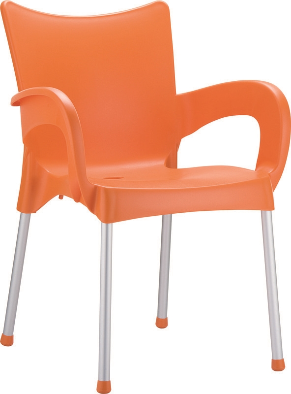 Πολυθρόνα ROMEO του οίκου Siesta σε πορτοκαλί χρώμα,κατασκευασμένη από πολυπροπυλένιο ενισχυμένο με 20% fiber glass και πόδια από ανοδειωμένο αλουμίνιο Φ25mm,για απόλυτη αντοχή στον χρόνο.Κατάλληλη για εσωτερική και εξωτερική χρήση,στοιβαζόμενη σε πολλά χρώματα,ιδανική για επαγγελματική χρήση.